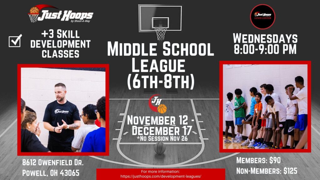 Join our Middle School League for 5-sessions of healthy competition, learning, and fun. During our middle school league players will be participating in live play segments to help them learn the game and enhance their basketball IQ. Our live play segments will consist of games simulating basketball actions, situational live play, and 1v1 competitions. During our Middle School League, coaches will instruct players on spacing, decision making, cutting, and screening.