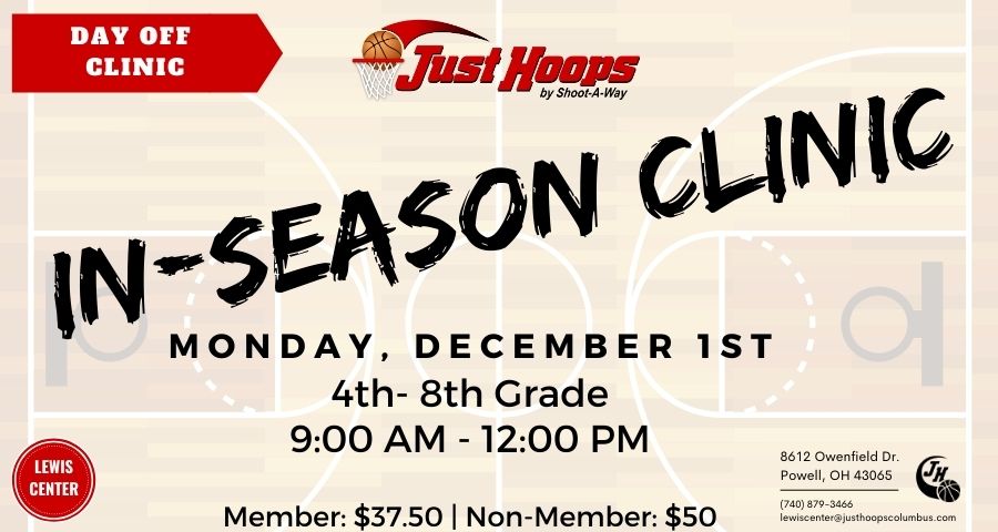 Just Hoops In-Season Skills Clinic will challenge players to improve their offensive skill set through a variety of competitive games and scrimmage segments.