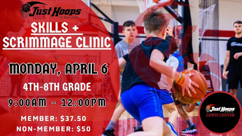 The Just Hoops March Madness Clinic will feature skill development focusing on ball-handling, finishing, pivoting & shooting.