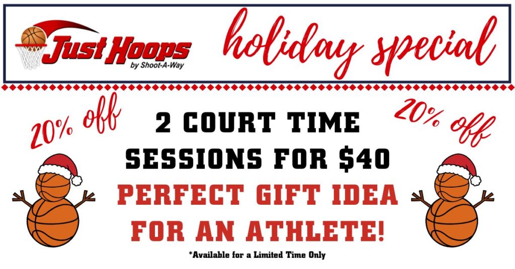 The holiday special is 2 Non-Member Court Time Sessions for 20% off.  These sessions are 30 minutes of shooting + the use of our ball handling stations.  It is a value of $50 for $40.  Available for a limited time only.  Purchase Here!